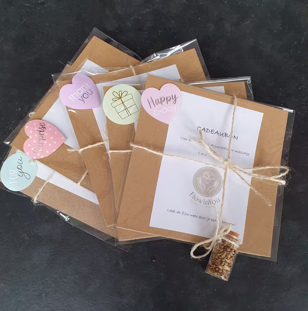 De cadeaubon is te gebruiken voor alle Ayurvedische massages en behandelingen bij FlowinYou.
